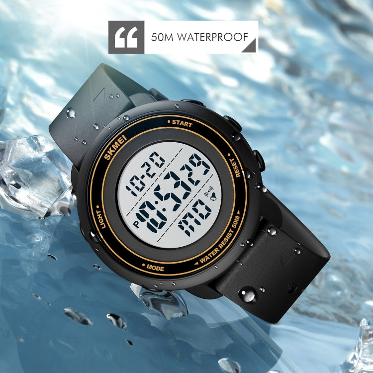 Montre électronique lumineuse SKMEI 1736 à cadran rond triple, affichage numérique LED (or et blanc)