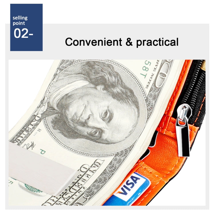 9653SN Men and Women Two-fold RFID Anti-theft Genuine Leather Wallet with Y-shaped Front Pocket(Orange)