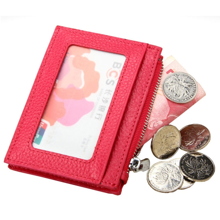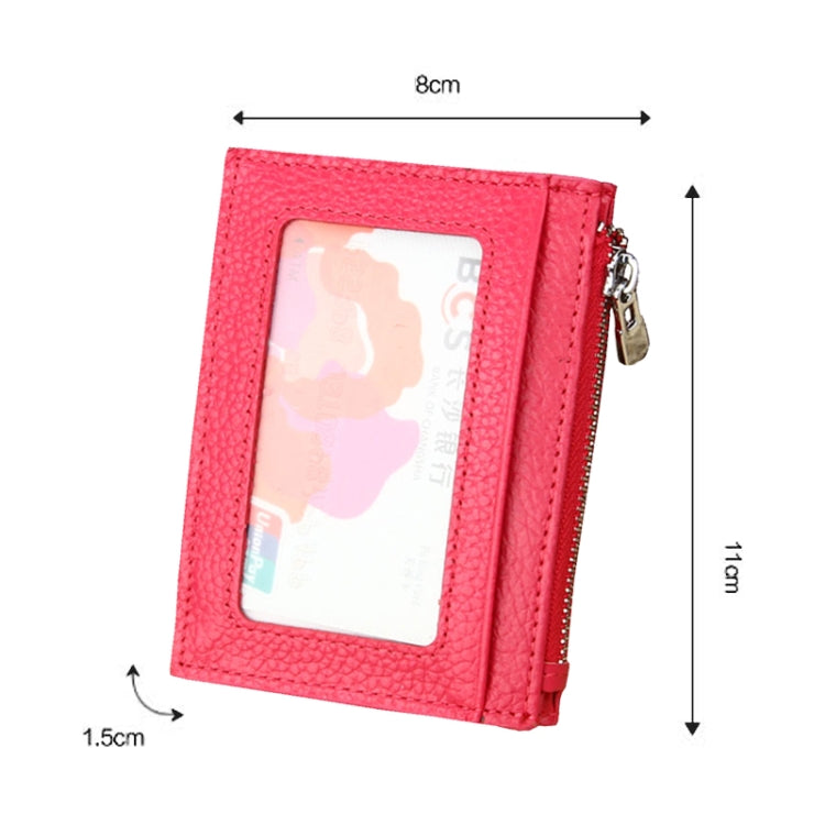 Cowhide Leather Solid Color Zipper Card Holder Wallet RFID Blocking Card Bag Protect Case Coin Purse, Size: 11*8*1.5cm(Magenta)