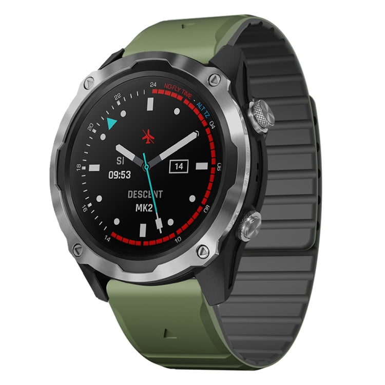 For Garmin Descent MK1 / MK2 / MK2i Dual Color Magnetic Quick Release 26mm Silicone Watch Band(Green+Black)