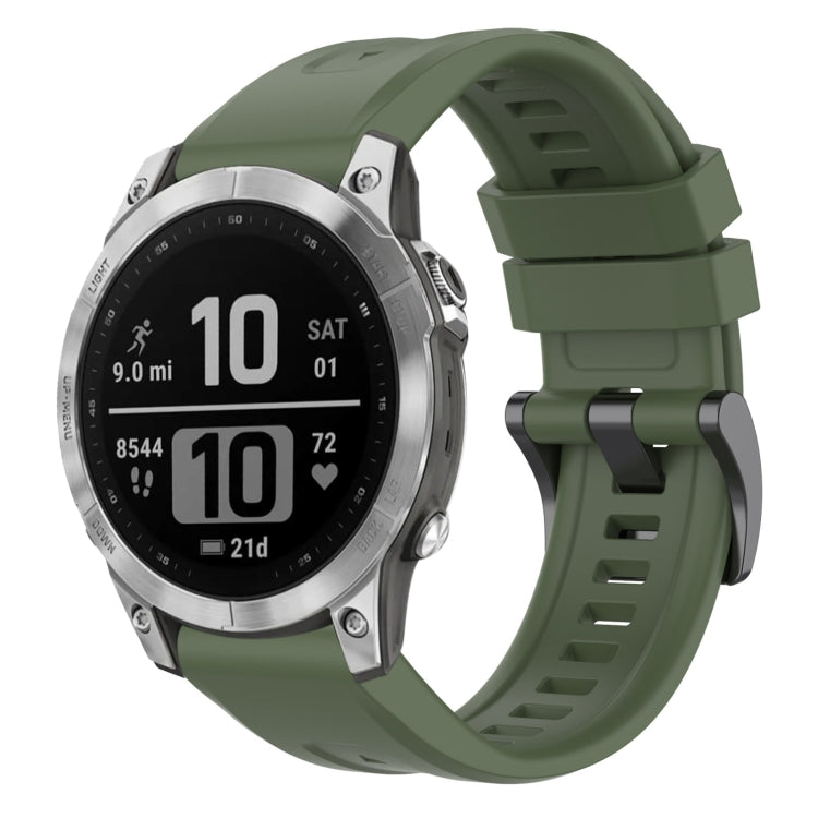 For Garmin Fenix 7 Pro Solid Color Black Buckle Silicone Quick Release Watch Band(Dark Green)