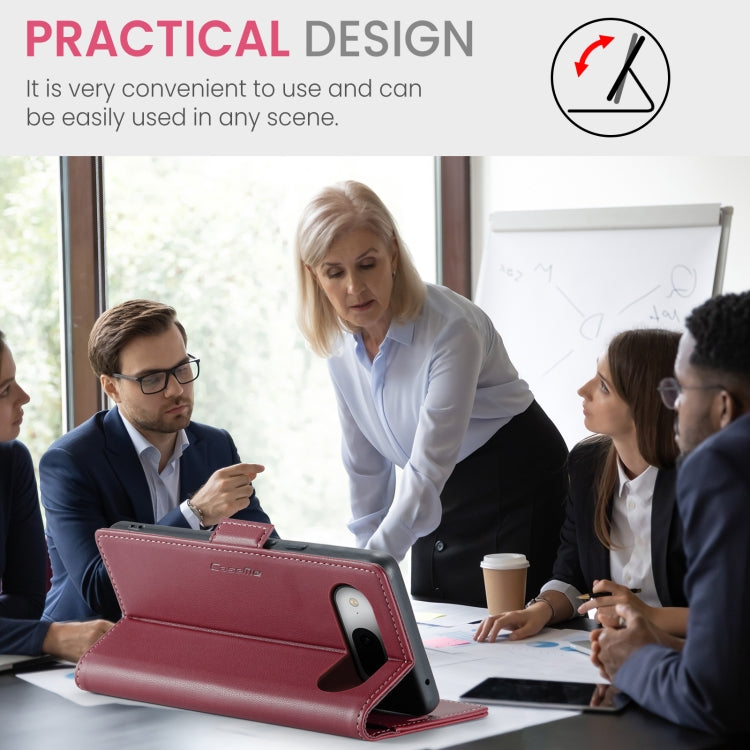 For Google Pixel 8a CaseMe 023 Butterfly Buckle Litchi Texture RFID Anti-theft Leather Phone Case(Wine Red)