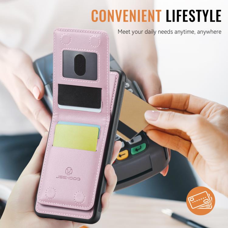 For Google Pixel 9 Pro XL JEEHOOD J06 British Style RFID MagSafe Card Bag PU Phone Case(Pink)