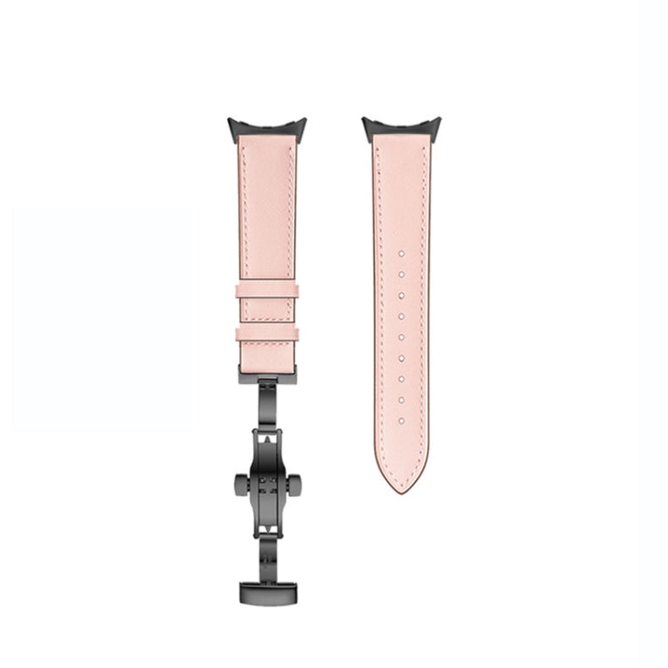 For Google Pixel Watch Butterfly Buckle Genuine Leather Watch Band(Black Pink)