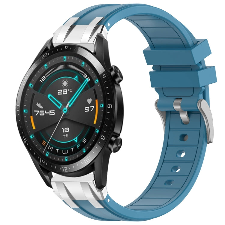 For Huawei Watch GT2 46mm 22mm Quick Release Silver Buckle Royal Silicone Watch Band(Sea Blue)