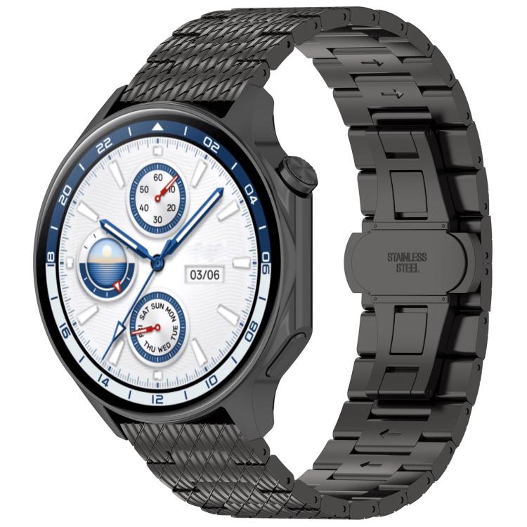For OPPO Watch X2 Twill Texture Stainless Steel Metal Watch Band(Black)