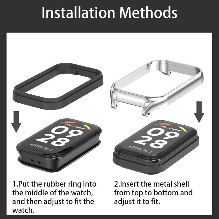 For Xiaomi Smart Band 8 Active / Redmi Band 2 Mijobs Metal Shell Genuine Leather Watch Band(White Silver)