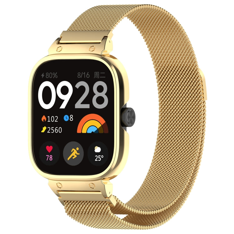 For Redmi Watch 5 Metal Frame Watch Case Integrated Milan Magnetic Steel Mesh Watch Band(Gold)