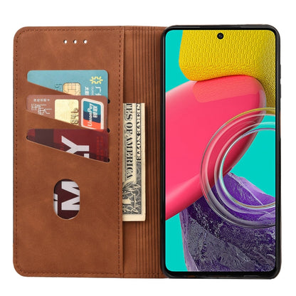 For Samsung Galaxy M53 5G Skin Feel Splicing Leather Phone Case(Brown)