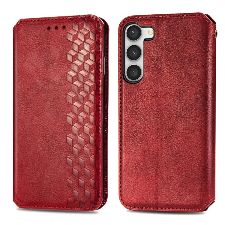 For Samsung Galaxy S23+ 5G Cubic Grid Pressed Magnetic Leather Phone Case(Red)