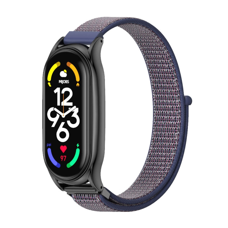 For Xiaomi Mi Band 7 / 7 NFC MIJOBS Plus Stainless Steel Case Nylon Watch Band(Midnight Blue Black)