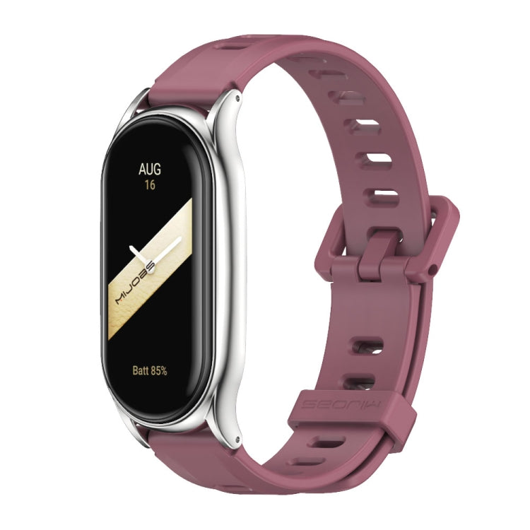 For Xiaomi Mi Band 8 Mijobs Plus Case Flat Hole Silicone Watch Band(Wine Red Silver)