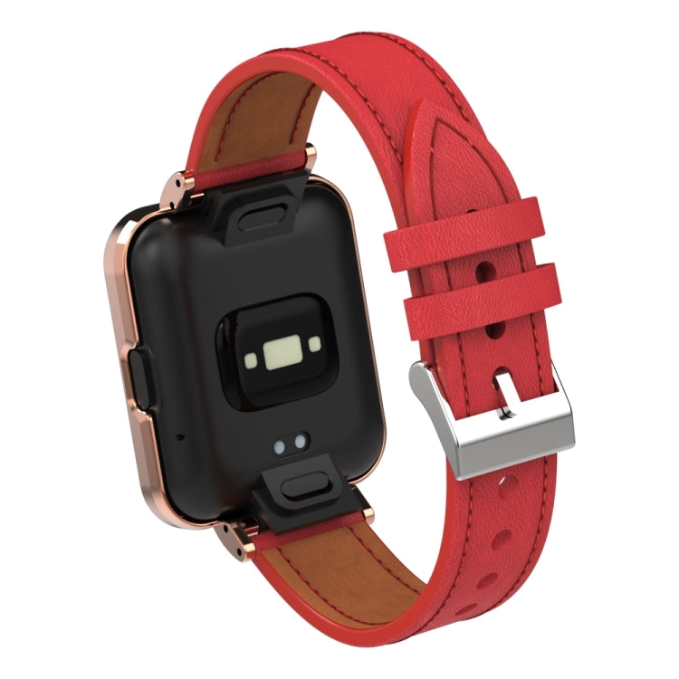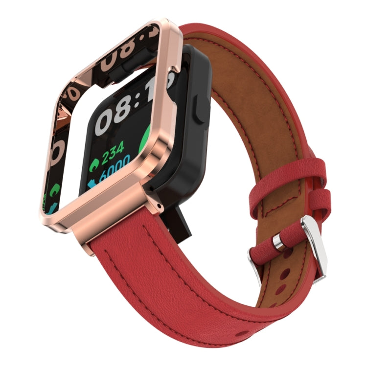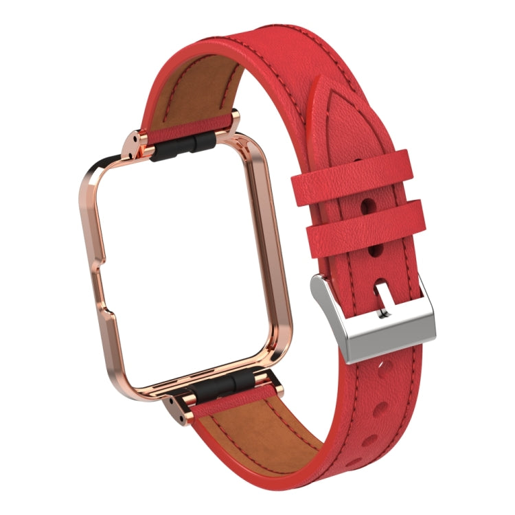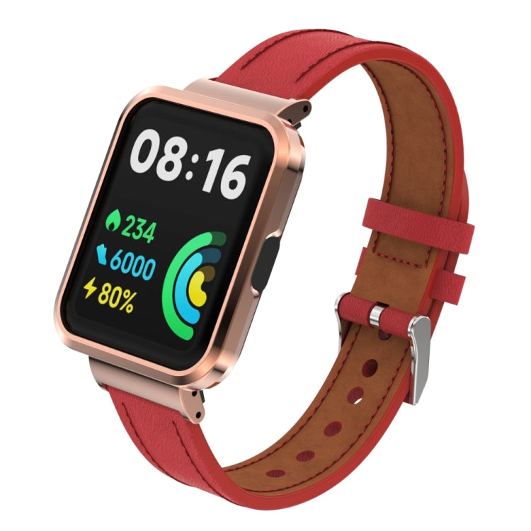 For Xiaomi Redmi Watch 2 Lite Genuine Leather Metal Case Integrated Watch Band(Red)