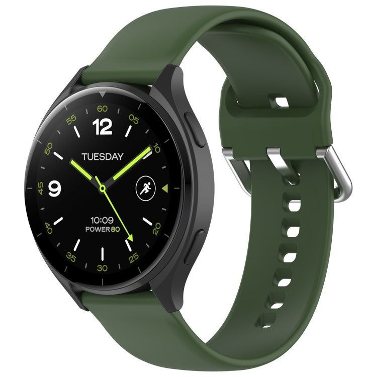 For Xiaomi Watch 2 Solid Color Metal Silver Buckle Silicone Watch Band, Size: L(Army Green)
