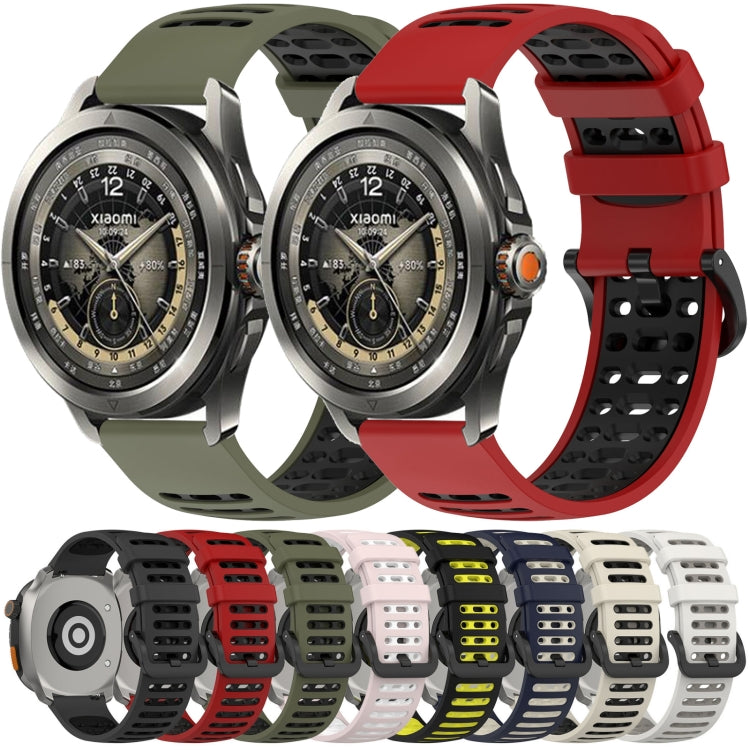 For Xiaomi Watch S4 Sport Two Color Holes Style Quick Release Silicone Watch Band(Black Lime)