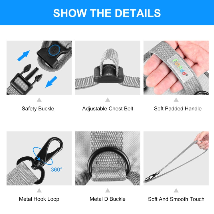 FunAdd Traction Rope Reflective Breathable Nylon Pet Vest Dog Harness, Size: S (Grey)