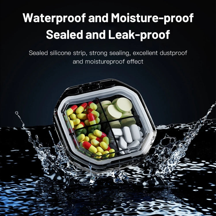 Portable Mini Compartmentalized Sealed Pill Box Weekly Morning And Evening Pill Capsule Dispensing Box, Style: 4 Grids Gray